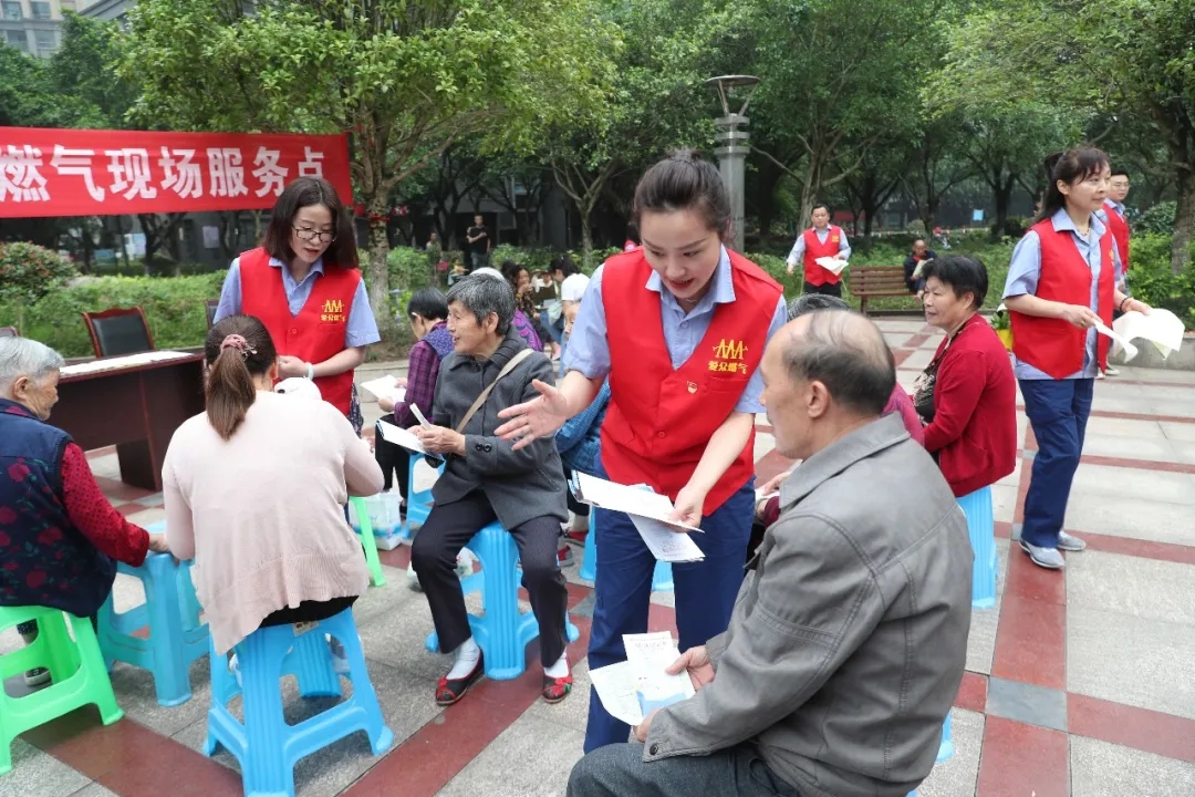 5月21日,在廣安區(qū)北辰街道岔路社區(qū)新天地小區(qū),廣安愛眾燃?xì)馐聵I(yè)部黨團(tuán)員志愿者正在向小區(qū)居民宣傳燃?xì)獍踩褂贸WR,收集對燃?xì)夤ぷ鞯囊庖娊ㄗh,零距離服務(wù)小區(qū)群眾。