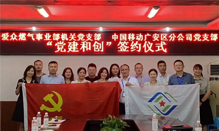 為充分發(fā)揮黨建引領(lǐng)作用,以共建促黨建,實現(xiàn)黨組織優(yōu)勢互補,增強基層黨組織凝聚力、創(chuàng)造力和戰(zhàn)斗力,9月2日下午,廣安愛眾燃氣事業(yè)部機關(guān)黨支部與中國移動廣安區(qū)分公司黨支部舉行“黨建和創(chuàng)”聯(lián)合共建簽約儀式。