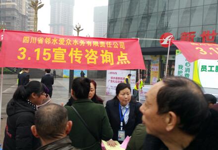“3.15”國(guó)際消費(fèi)者權(quán)益日到來(lái)之際,鄰水愛眾水務(wù)公司在龍騰廣場(chǎng)組織開展了以“網(wǎng)絡(luò)誠(chéng)信 消費(fèi)無(wú)憂”為主題的宣傳咨詢活動(dòng)。
