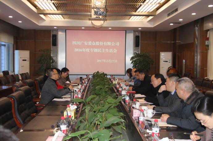 2月17日,愛(ài)眾股份公司在第一會(huì)議室召開(kāi)專題民主生活會(huì)。公司在家領(lǐng)導(dǎo)參加會(huì)議。廣安區(qū)紀(jì)委、區(qū)委組織部有關(guān)領(lǐng)導(dǎo)到會(huì)指導(dǎo)。